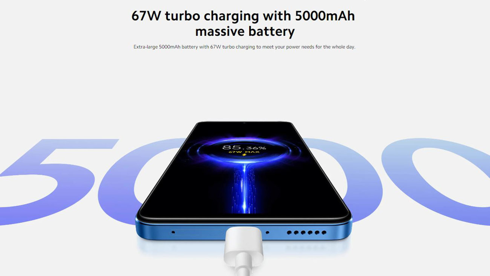 باتری 5000 میلی آمپر ساعتی عملکرد شارژدهی مناسبی داره و میتونه در استفاده معمولی و روزمره حدود یک روز بهتون شارژدهی کنه. البته اگه استفاده سنگین زیادی داشته باشید، مثلا چندین دست بازی کنید و چندین ساعت به تماشای ویدیو با کیفیت بالا مشغول بشید، باید حول و حوش ساعت 8 شب مجدد گوشی رو شارژ کنید. البته به خاطر آداپتور 67 واتی که توی جعبه قرار گرفته نیازی نیست خیلی صبر کنید و بعد از حدود 45 تا 50 دقیقه گوشی کاملا شارژ میشه و میتونید مجدد ازش استفاده کنید و میشه گفت عملکرد کلی گوشی چه در بخش شارژدهی و چه سرعت شارژ مناسبه و شما رو لنگ نمیذاره.