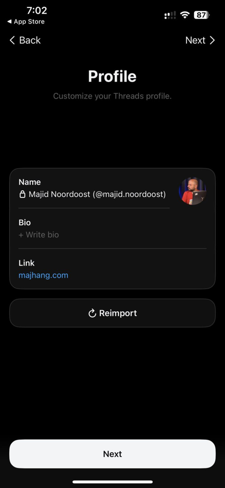 با ایمپورت کردن حساب اینستاگرام در تردز با چنین صفحهای مواجه میشوید.